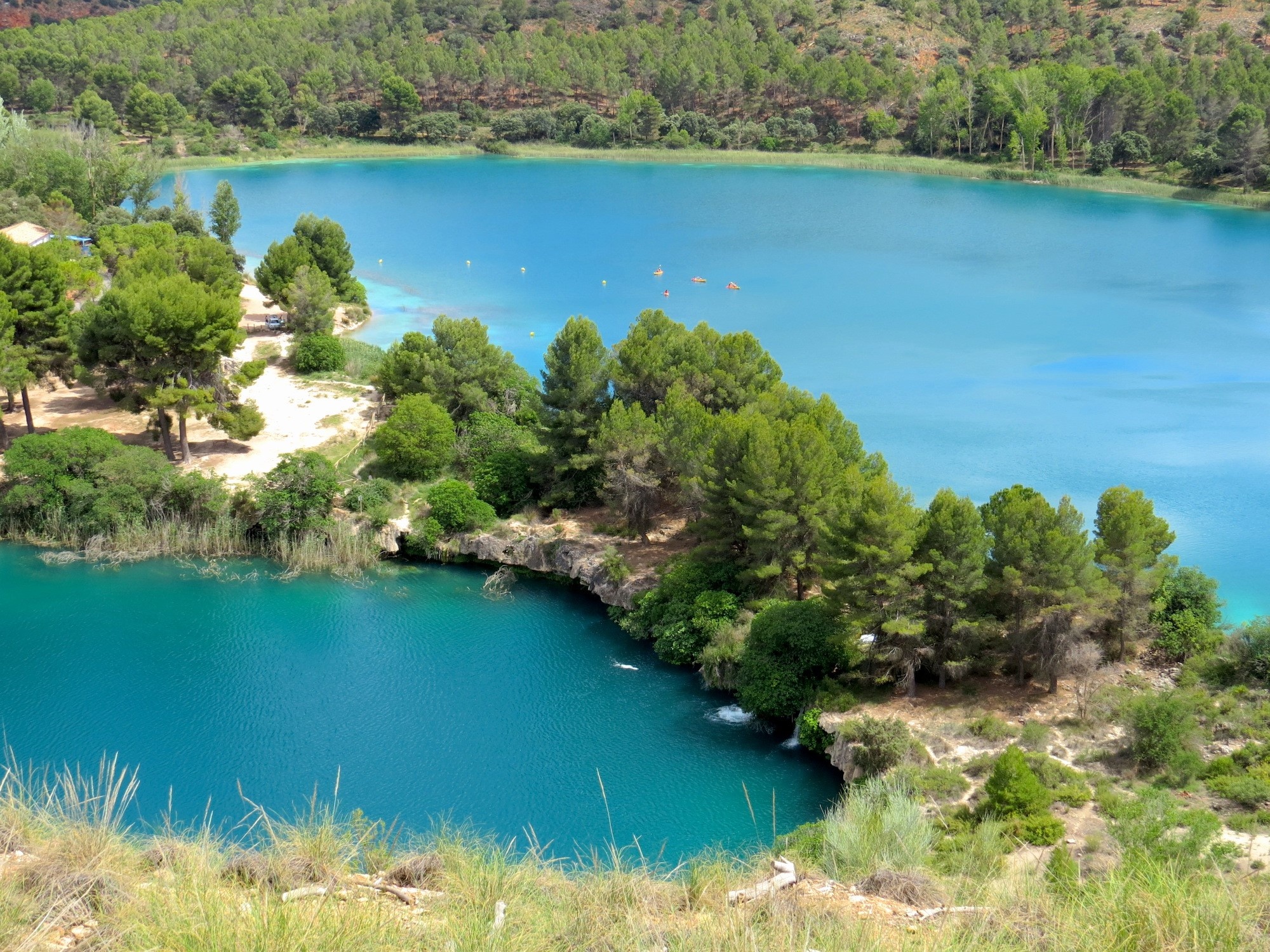 Weit weniger bekannt als die Plitvicer Seen in Kroatien, aber mindestens genauso sehenswert ist der Naturpark Lagunas de Ruidera inmitten des Steppenlandes von La Mancha. In einer landschaftlich absolut beeindruckenden Oase im Südosten der Provinz Ciudad Real befinden sich fünfzehn aneinandergrenzende Seen, die auch hier kaskadenförmig angeordnet sind.