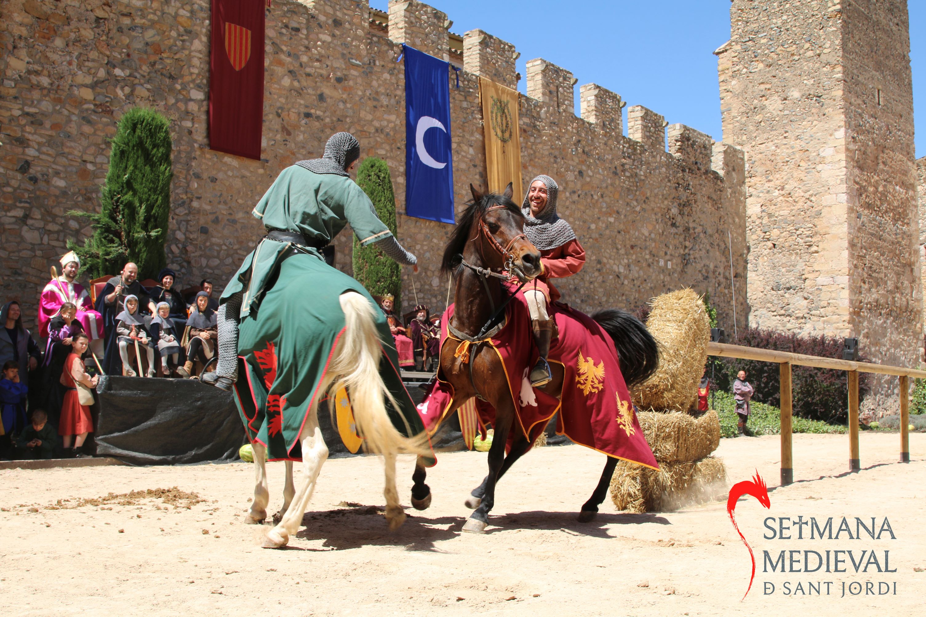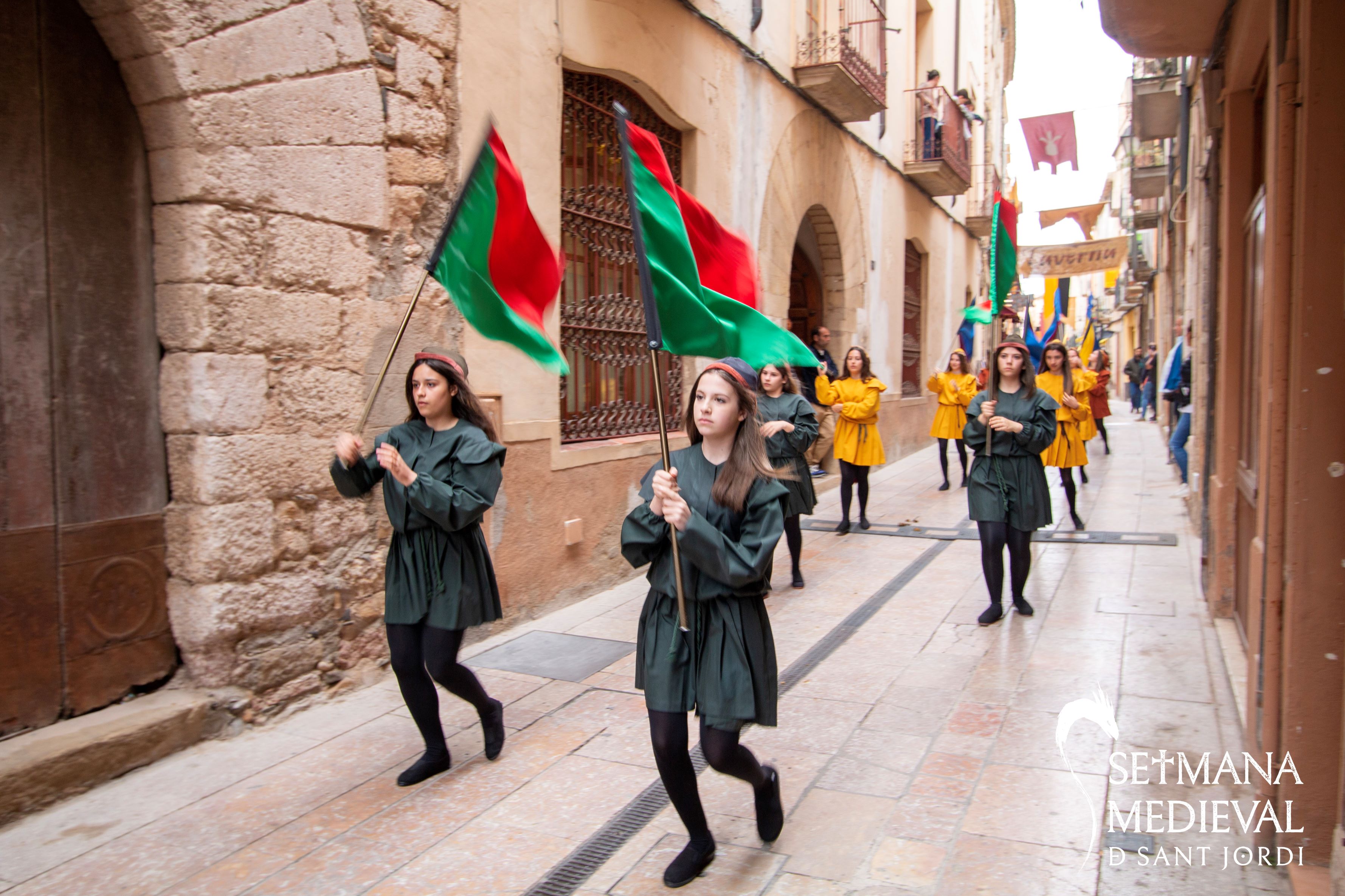 Die ganze Stadt beteiligt sich aktiv an der Mittelalterwoche und schafft eine ideale und bunte Kulisse in den engen Gassen, um die Besucher ins Mittelalter zu versetzen und sie an der Geschichte und Legende von Sant Jordi und dem Drachen teilhaben zu lassen. Tapfere Ritter in Rüstungen mit Schilden und Lanzen treten zu Duellen und Turnieren an. Bogenschützen zeigen ihre Treffsicherheit in Wettkämpfen. Handwerker präsentieren und verkaufen ihre Produkte auf dem Markt. Von den Türmen und Mauern wehen die Flaggen alter Adelshäuser.