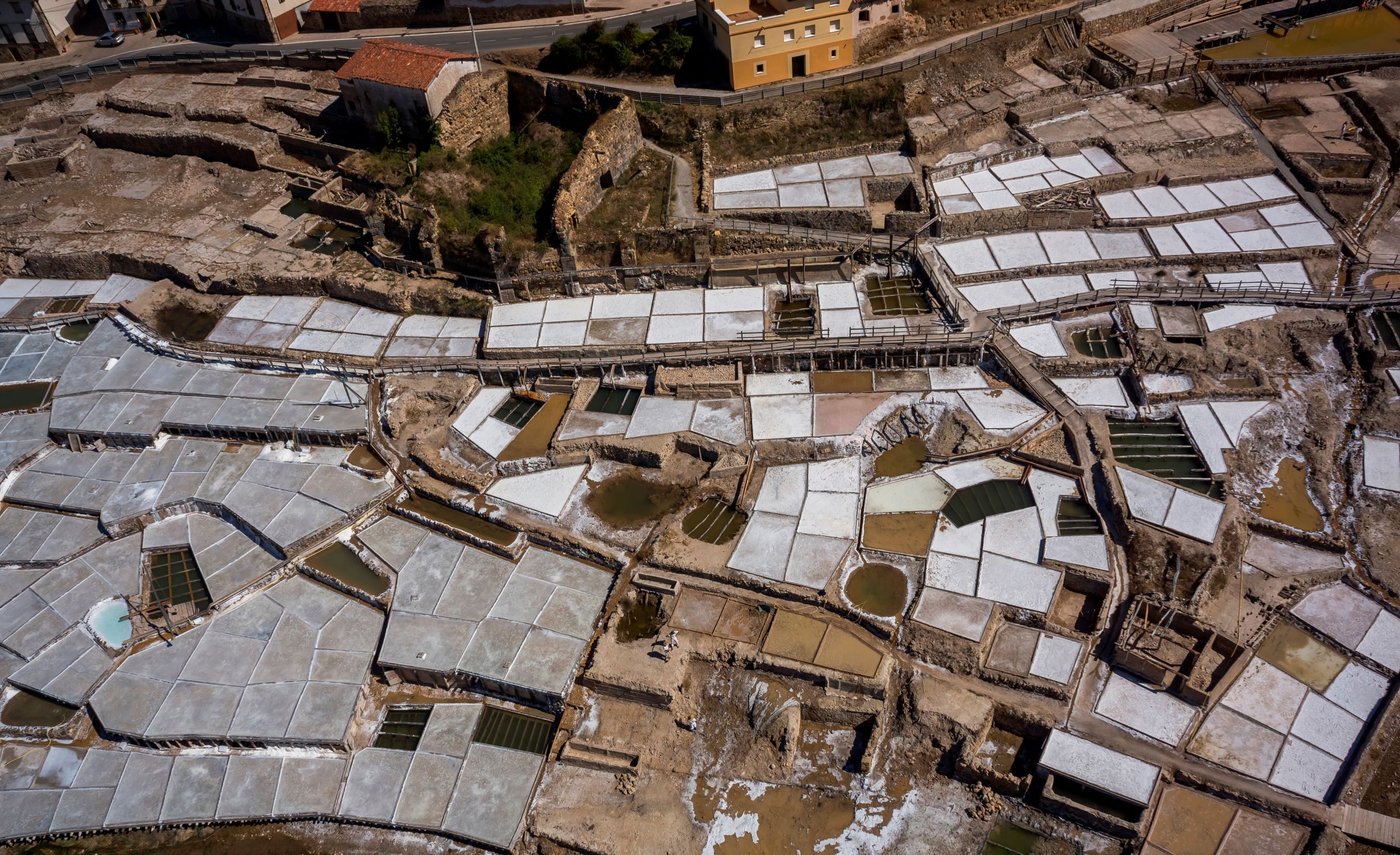 Valle Salado, so der spanische Name für das Salztal, in der alavesischen Gemeinde Añana ist derzeit eine der kulturell imposantesten und am besten erhaltenen Landschaftsgebiete in Europa. In der ältesten Stadt der Provinz Alava und dem, was vor 200 Millionen Jahren noch Gewässer eines weiten Meeres waren, erhebt sich die stolze, in über 5.000 Jahren entstandene Kulturlandschaft unter freiem Himmel: Schelfe, auf denen sich die aus der Quelle stammende Salzsole zur Salzgewinnung mittels Verdampfung durch Sonnenwärme ergießt.
