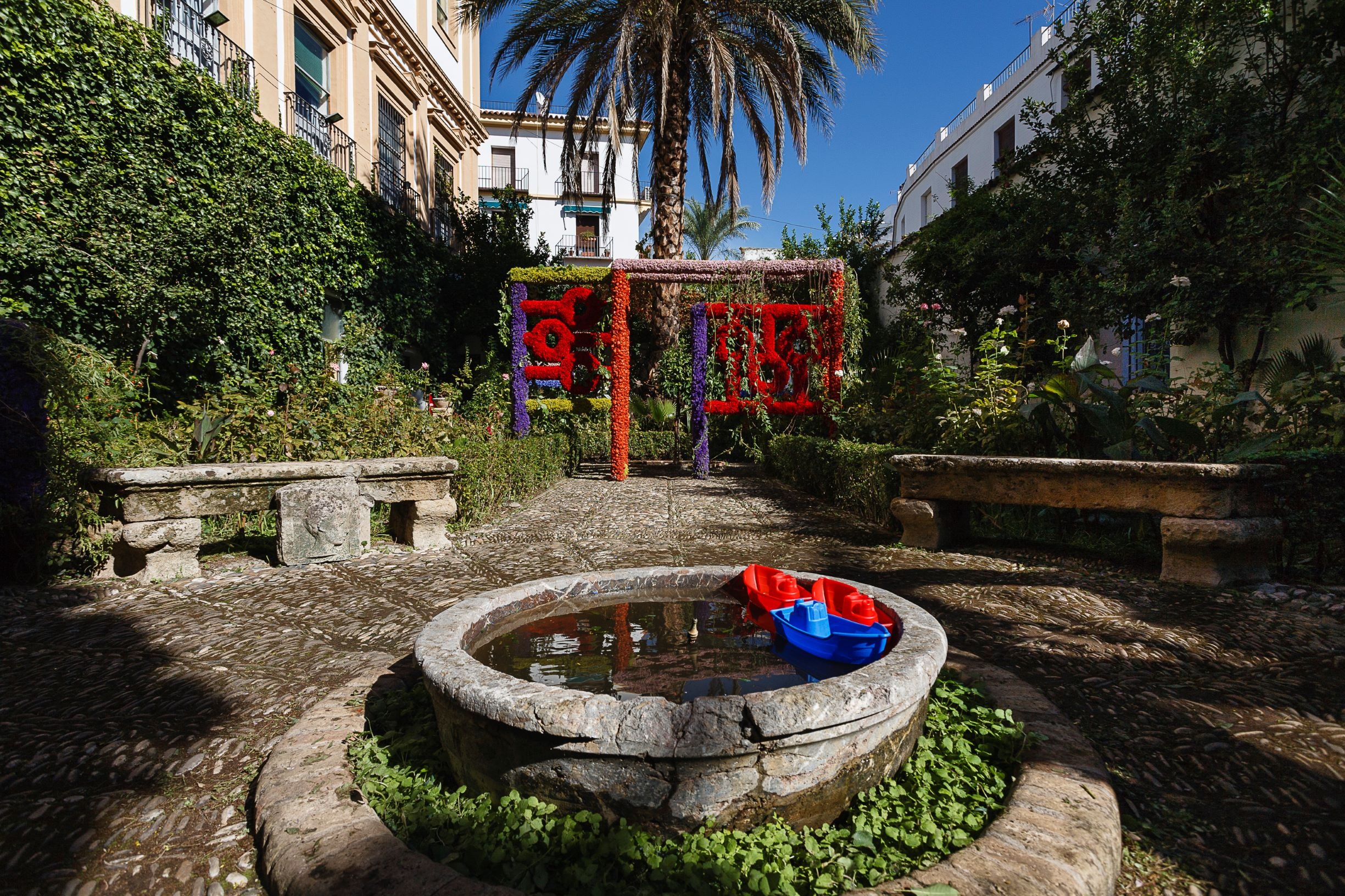 Blumenkünstler von internationalem Rang haben die Möglichkeit, verschiedene Innenhöfe in faszinierende Räume zu verwandeln, die sich in repräsentativen Gebäuden von Córdoba, in von der Stadtverwaltung von Córdoba zur Verfügung gestellten institutionellen Innenhöfen und in den Innenhöfen von Sponsoren befinden. Diese passageren Installationen können kostenlos besichtigt werden. Sie ermöglichen eine wunderbare Reise durch eine Blumenwelt, die von mannigfachen Erinnerungen, Kunst-, Kultur- und Traditionselementen geprägt ist. Cordoba verfügt über ein monumentales historisches Zentrum, das zum Weltkulturerbe erklärt wurde und voller kleiner Gassen ist, die zum Verweilen einladen, mit blumengeschmückten Innenhöfen, angenehmen Plätzen und lebhaften Tavernen, in denen man gute Flamenco-Shows genießen oder die typische Gastronomie probieren kann. Der Charme der Stadt geht über ihre Monumentalität hinaus. Bei einem Spaziergang entdeckt man ein Netz von engen Gassen, Plätzen, Brunnen und die blumengeschmückten Höfen.
